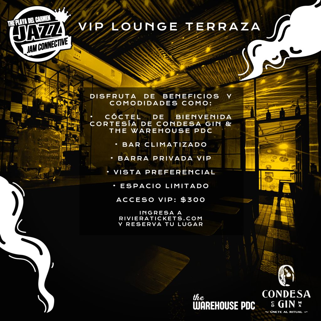 🎷✨ Conoce nuestro VIP Lounge Terraza y disfruta de una experiencia exclusiva en The Jazz Jam Connective. Al adquirir tu entrada VIP, tendrás acceso a: